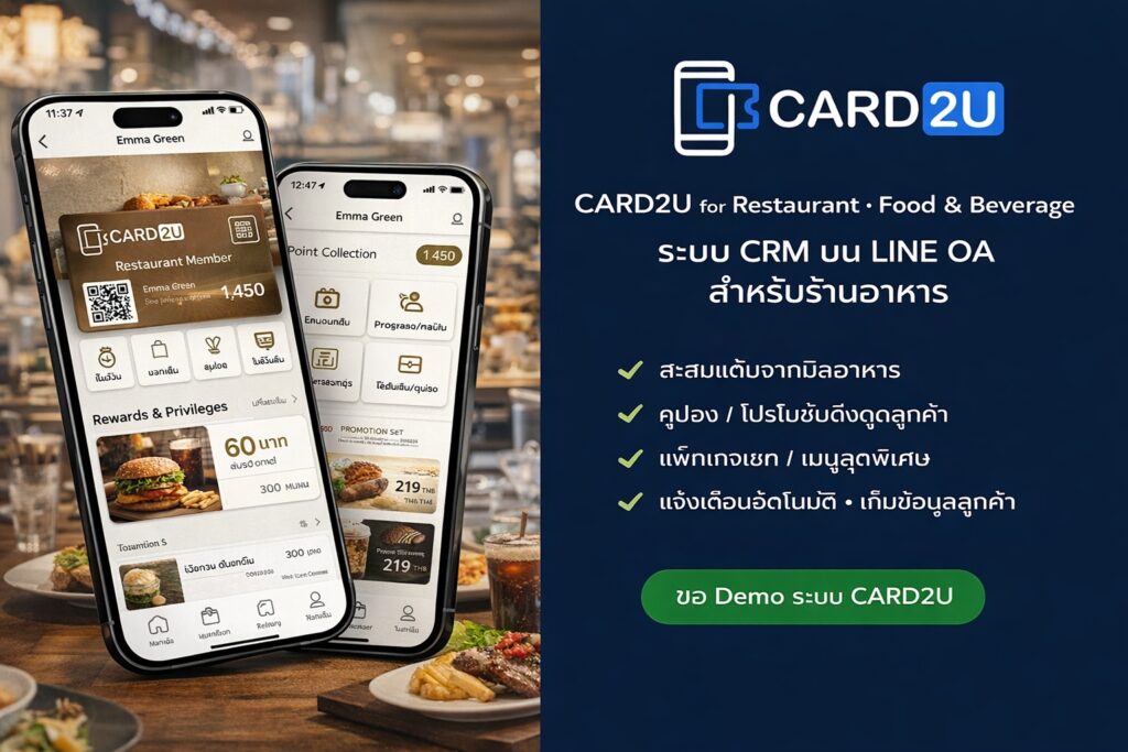 CARD2U ช่วยให้การโปรโมทธุรกิจขนาดเล็กทำได้ง่ายและประหยัดค่าใช้จ่ายผ่านทาง LINE OA ด้วยฟังก์ชันที่ครอบคลุมทั้งการส่งข้อมูล & โปรโมชั่นถึงลูกค้ากลุ่มเป้าหมาย การสะสมคะแนน การแลกคะแนน การสร้างและขาย Voucher การเก็บข้อมูลลูกค้า เพื่อใช้วิเคราะห์ รวมทั้งรองรับการชำระเงินได้ทั้ง Online และ Offline โดยมี ระบบหลังบ้านที่ช่วยให้สามารถจัดการเรื่องต่างๆได้ง่ายและสะดวกสบาย และสามารถ เชื่อมต่อเครื่องคอมพิวเตอร์ POS พร้อมฟังก์ชันการใช้งานที่ตอบโจทย์ครบทุก ความต้องการ